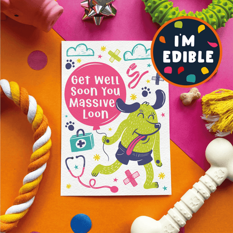 Scoff Paper Edible Cards for Dogs - Get Well Loon
