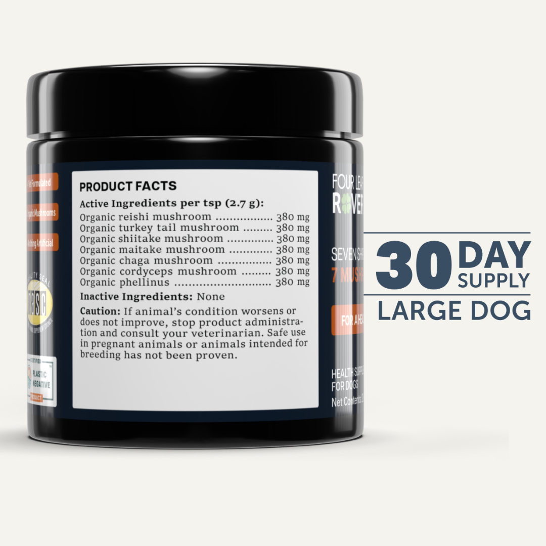 The mushrooms in Four Leaf Rover's Immunity have been hand-picked to help support your dog’s immune system. The double extraction process makes sure that the beneficial beta-glucans and triterpenoids are bioavailable and ready to help balance your dog’s immune system.