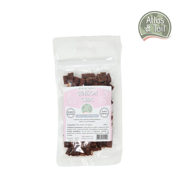 No matter your training need, whether it’s house training, trick training or something more complicated, Atlas and Tail Venison Chips Training Treats will be your new favourite tool. They’re so good, dogs say they taste like “more”.